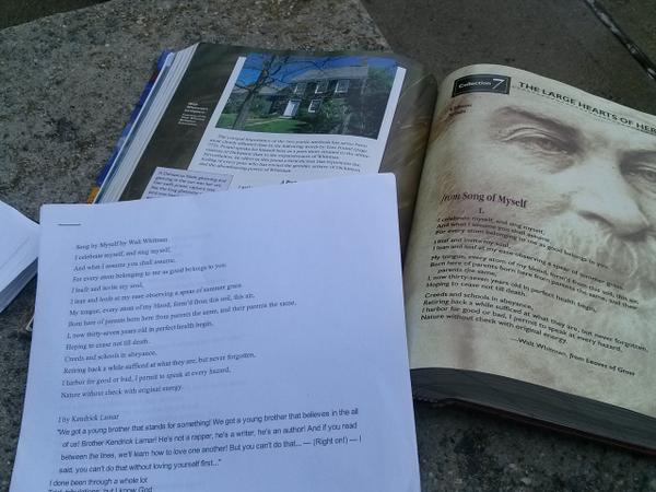 There are myriad connections students can make in the outdoor classroom. For example, these students taught there classmates about thematic connections between Walt Whitman's canonical poem "Song of Myself" and Kendrick Lamar's contemporary rap song "i."