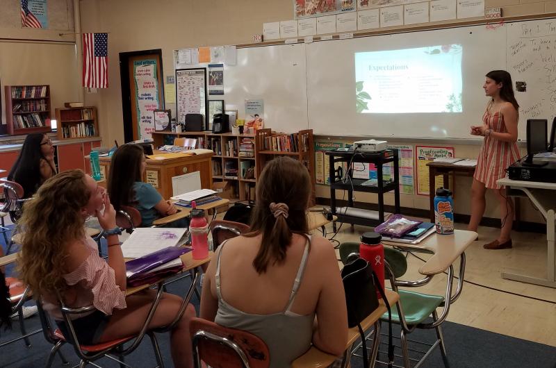 Senior co-editor-in-chief Francesca Leggio facilitates yearbook class on the first day of school, 8.28.2018.